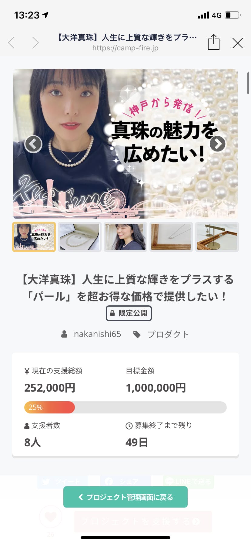 プロジェクトページをご覧のみなさま、ご支援いただいた皆様こんばんは!大洋真珠の中西です!この度はプロジェクト公開3日目で早くも25%を達成しましたので活動報告として上げさせて頂きます!本当にありがとうございます。ここからがまた本番ですので皆様引き続きプロジェクトのシェアなどよろしくお願い致します!