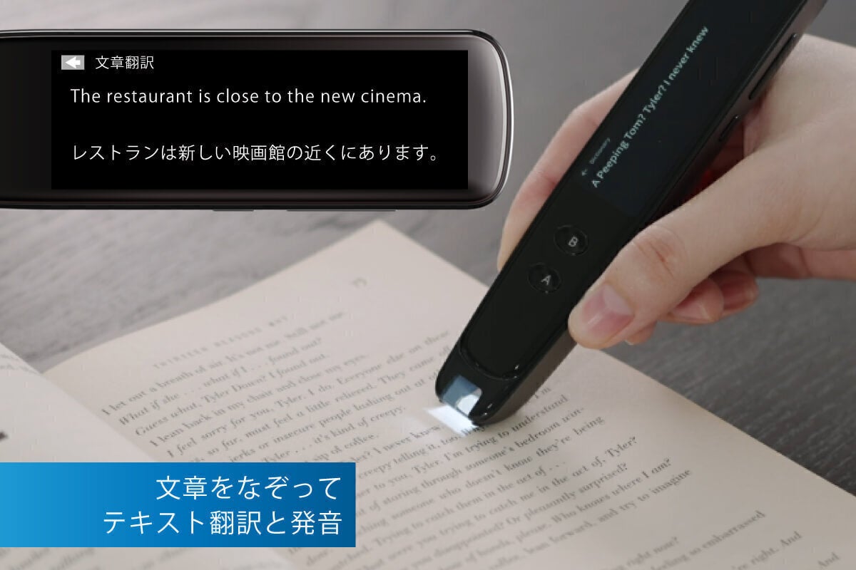 A:他の翻訳スキャナはディスプレイ付かなかったり、スマホやPCに接続して、アプリでの使用しかできないものもあります。本製品は大画面フルタッチディスプレイを搭載、OS内蔵により、テキストをスキャンするだけで、テキスト内容とその翻訳文を画面に表示されます。また、ネットワークなしでも日英中の3言語対応します。
