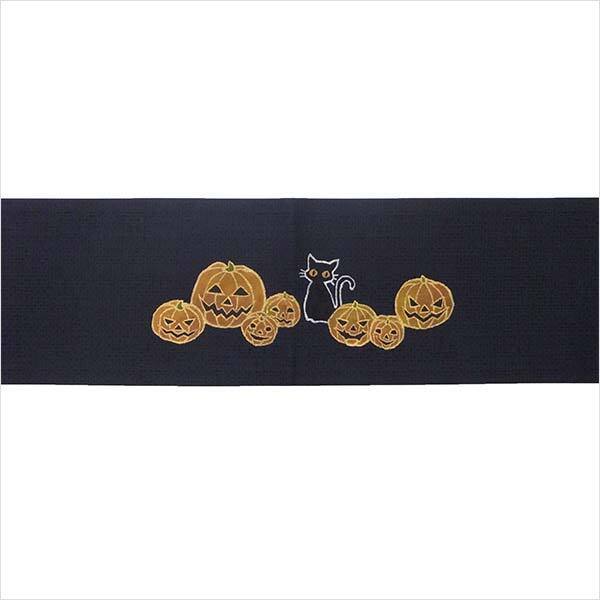 ハロウィン柄の手書き半幅帯は、プロジェクト終了後1週間程度で発送。