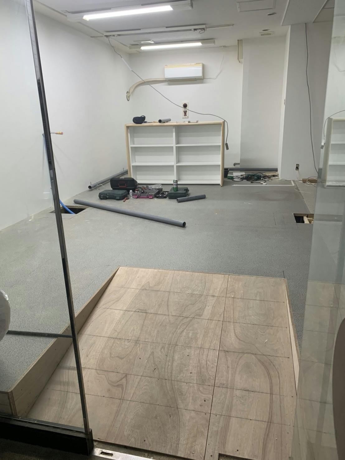 内装工事が着実に進んでおります。カウンターの設置も完了し、作業スペースも確保して洗車作業用の機器の搬入を行います。