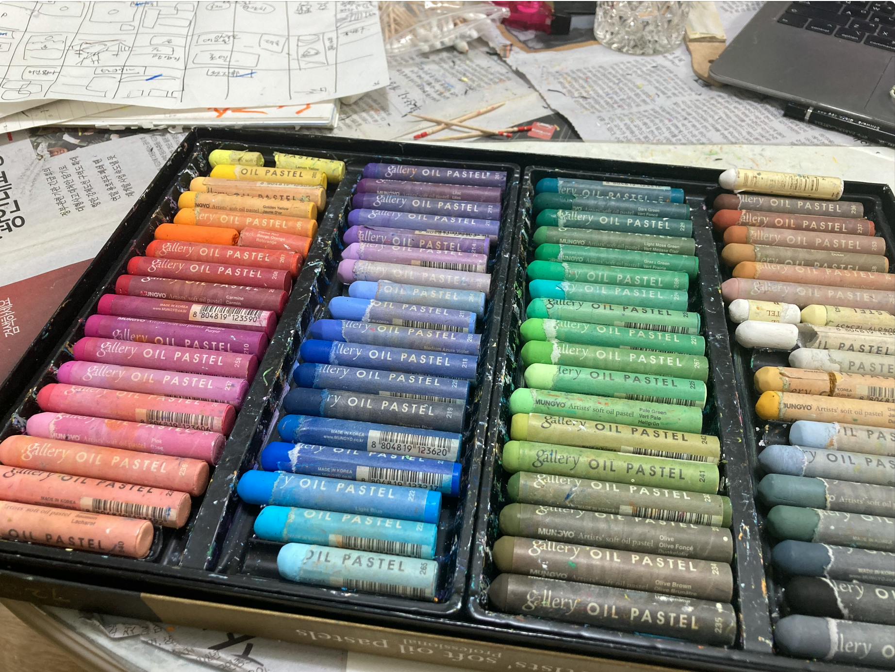2021/09/10 13:02オイルパステルが、毎日描きながらだんだん汚れたり順番がバラバラになってきたので、気分転換も含めて整理しました。身の回りを綺麗にすると運気というか心が切り替わったり、スッキリするので定期的にするよう心がけています。こうやってみるとどの系統の色がよく使われたか見えますね。本にするので、見がいのある絵、色で表現することを意識しています。ちなみに、白色は色のブレンディングによく使うので何個目かわかりません笑オイルパステルデビューから2ヶ月。一旦ここで綺麗に拭いて順番も揃えてまた描きます。今日も素敵な1日を。すーちゃんも頑張ります*^^* もっと見る