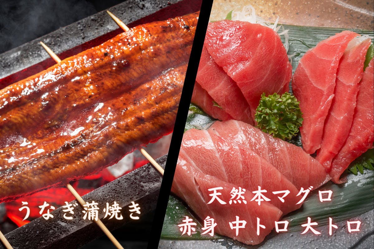 【ニホンウナギ蒲焼き+天然本マグロ赤身、中トロ、大トロセット】