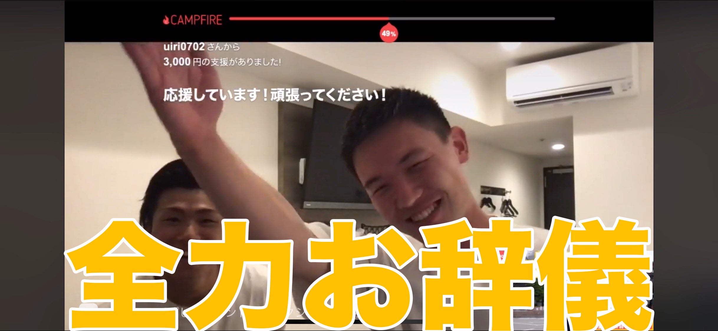 ライブ配信中にご支援をいただいた場合は【全力お辞儀】という、身体をはったパフォーマンスをさせていただいてます。ライブ配信中に投げ銭感覚で応援できるようにリターンに【全力お辞儀】という、ライブ配信用のリターンをご用意しています。