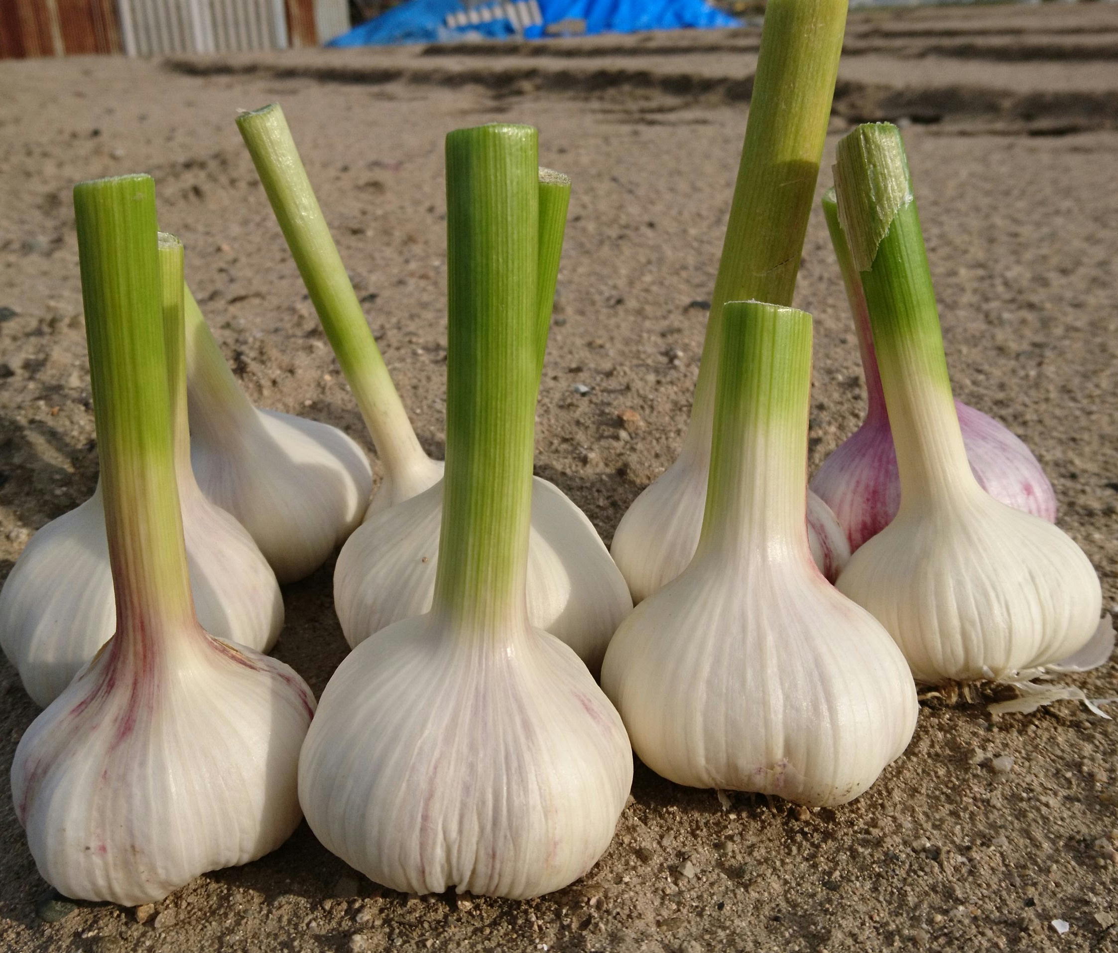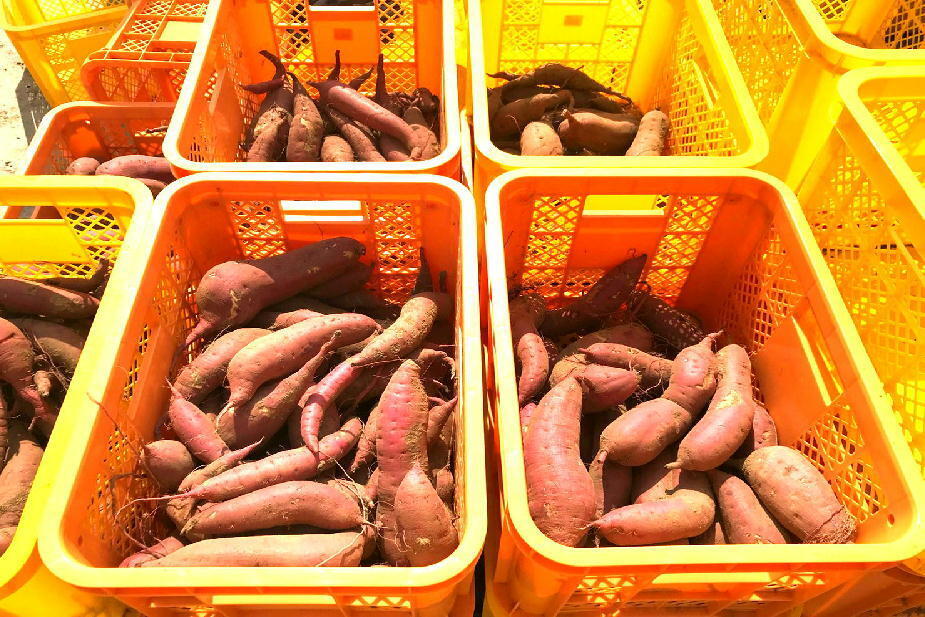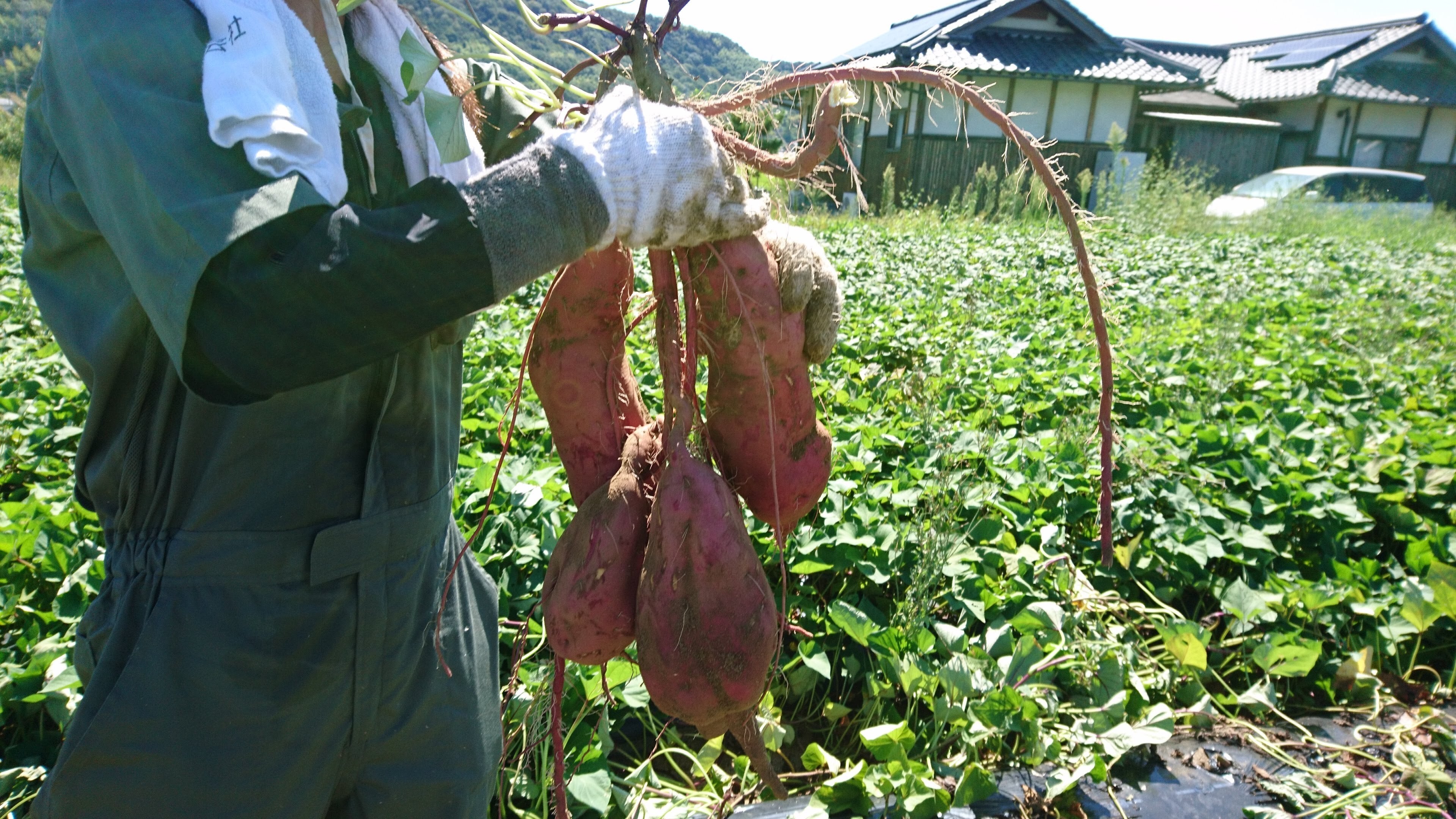 現在は、主にサツマイモとニンニクを栽培しています。6月にサツマイモを植え付けて9月に収穫し、10月にニンニクを作付けて5月に収穫するという二毛作を実現するべく、研究を重ねているところです。