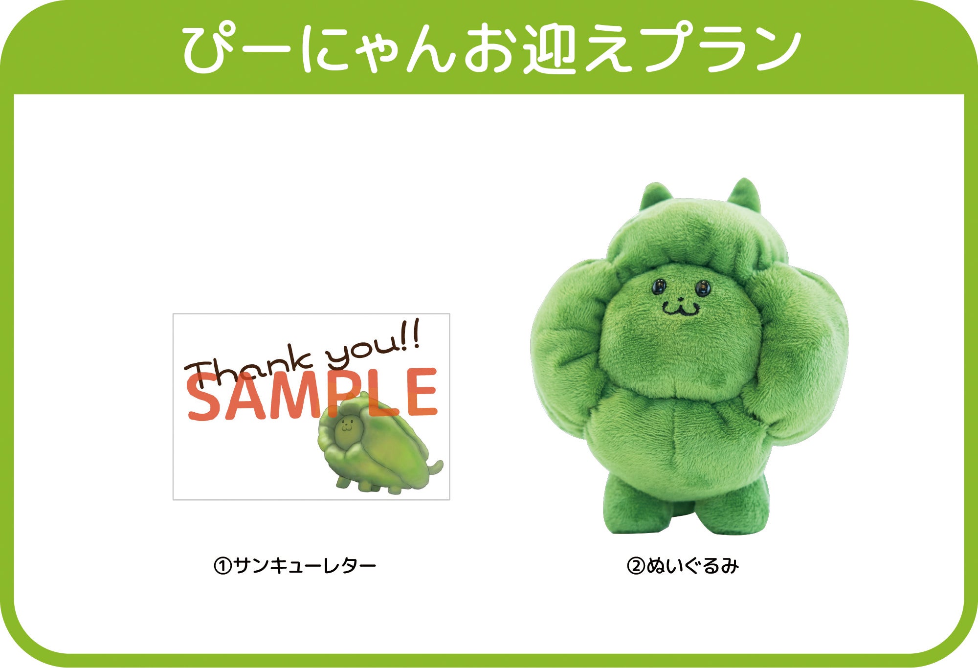 ▼ピーにゃんぬいぐるみに加え、お野菜妖精さんのタオルをお届けするスペシャルプラン