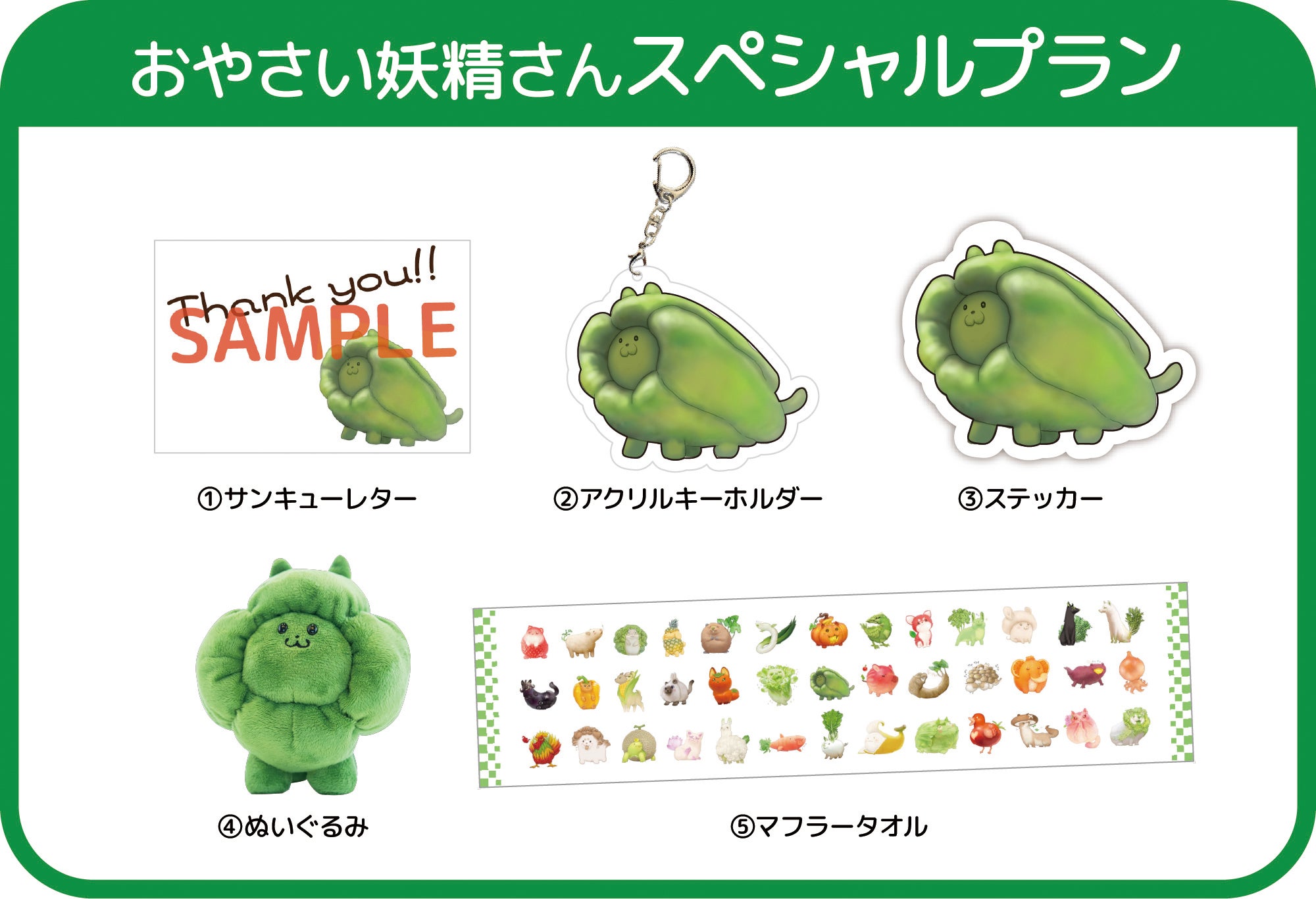 ※リターンの詳細の名前が「あのとり。とお出かけ!コンプリートプラン 」と記載されておりますが誤りで、正しくは「おやさい妖精さんスペシャルプラン」です。