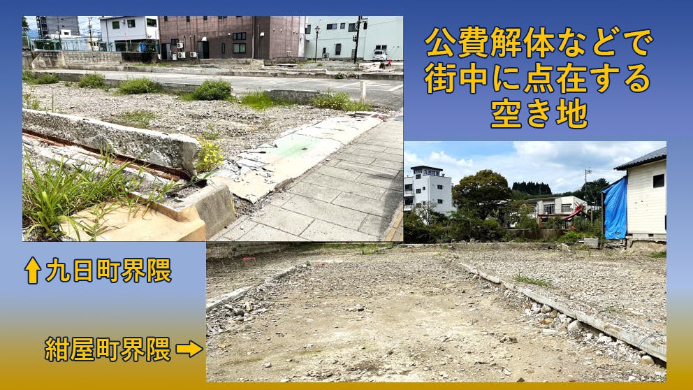 令和2年7月の記録的な豪雨により、熊本県を流れる球磨川が氾濫。 水害から1年が経ちましたが、被災地ではまだまだ経済的な復興とは程遠い状況です。公費解体などで、市内のあちこちに空き地ができています。市や町内会などで、今後どのように復興していくか熱い議論がされています。