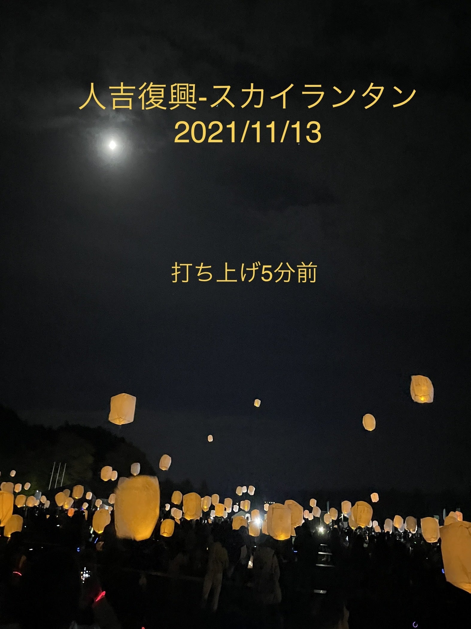 2021/11/15 21:53みなさまのおかげで、2021年11月13日、無事、スカイランタン イベントを実施しました。夜空に浮かぶランタンに、多くの人の思いが映し出されたように思いました。まだ復興途上の人吉ですが、人々の心に灯りをともす素敵なひと時でした。市長、商工会議所会頭、県会議員など来賓の皆さまも参加され、盛大なイベントになりました。来年は、もっとたくさんのスカイランタン が浮かぶ予定です。実行委員会メンバーも来年以後も続け、スカイランタン といえば人吉!となるように頑張ろうと意をかたくしました。宮崎県の延岡市からも高校生はじめ多くの応援団がかけつけてくれ、ありがたいことでした。また、このイベントは、ランタンの本場、台湾にも中国語でライブ配信されました。(MC/ねんどさん)みなさまからのご支援、本当にありがとうございました。 もっと見る