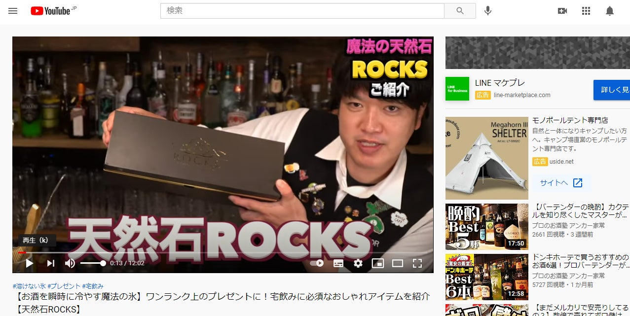 に、【氷が溶けない・味が薄まらない・自宅でBARが楽しめる魔法の天然石ROCKS!】のyoutube動画レビューを行って頂きました!!