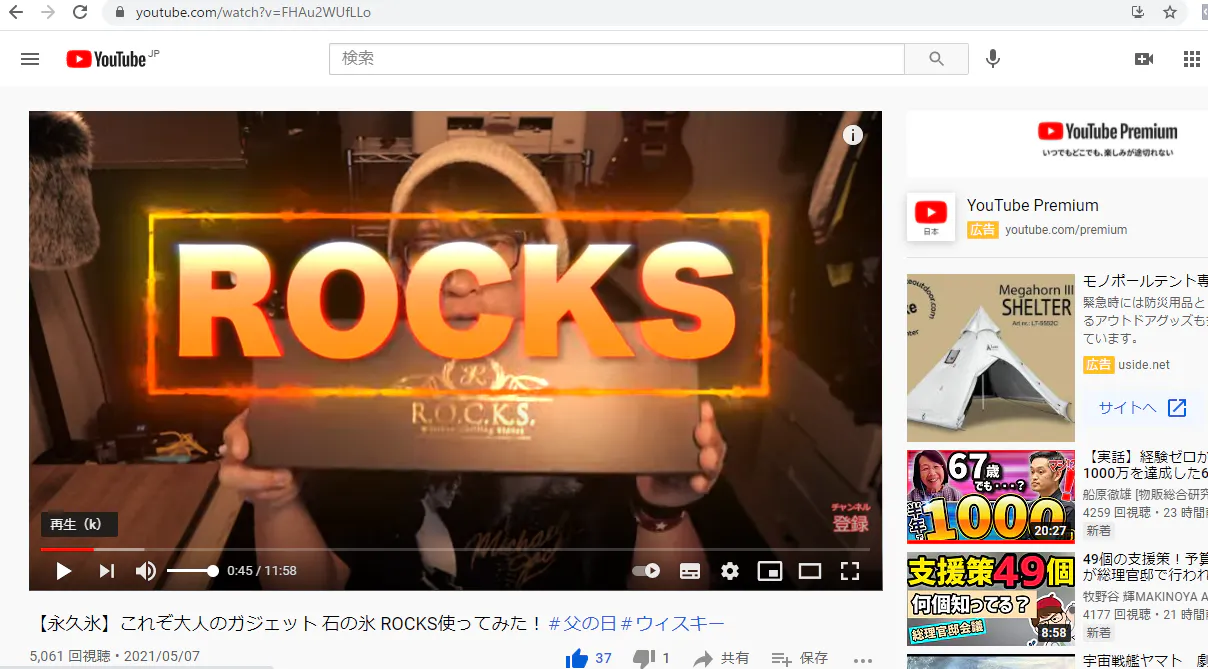 に、【氷が溶けない・味が薄まらない・自宅でBARが楽しめる魔法の天然石ROCKS!】のyoutube動画レビューを行って頂きました!!