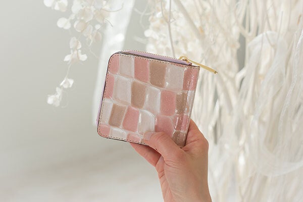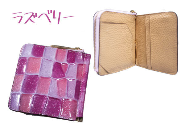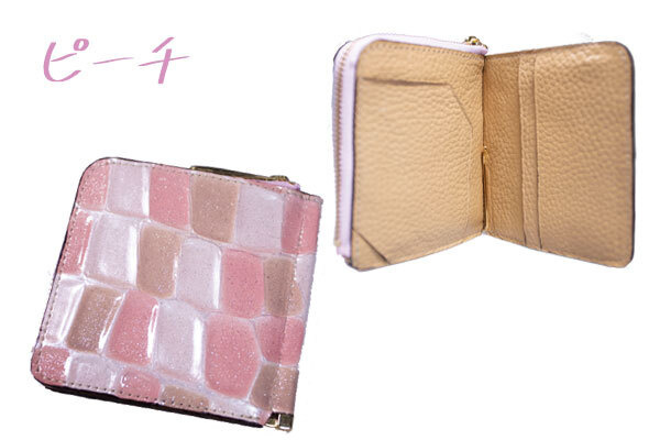 エナメル加工されたレザーとなりますので傷がつきにくく、新進工房の数あるレザーの中で、女性に一番人気のある革です。