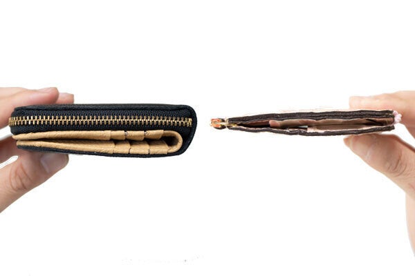 不必要なパーツを減らすことで薄いのに大容量のお財布を実現することができました。