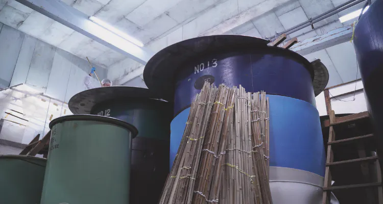 桑原酒場近くを流れる高津川は「清流日本一」に輝いた水質が最も良好な河川として評価されています。その高津川の清らかな伏流水を蔵敷地内の井戸から汲み上げて使用しています。水質はミネラル分が少ない軟水であるため、発酵が緩やかに進み柔らかな酒質に仕上がっています。