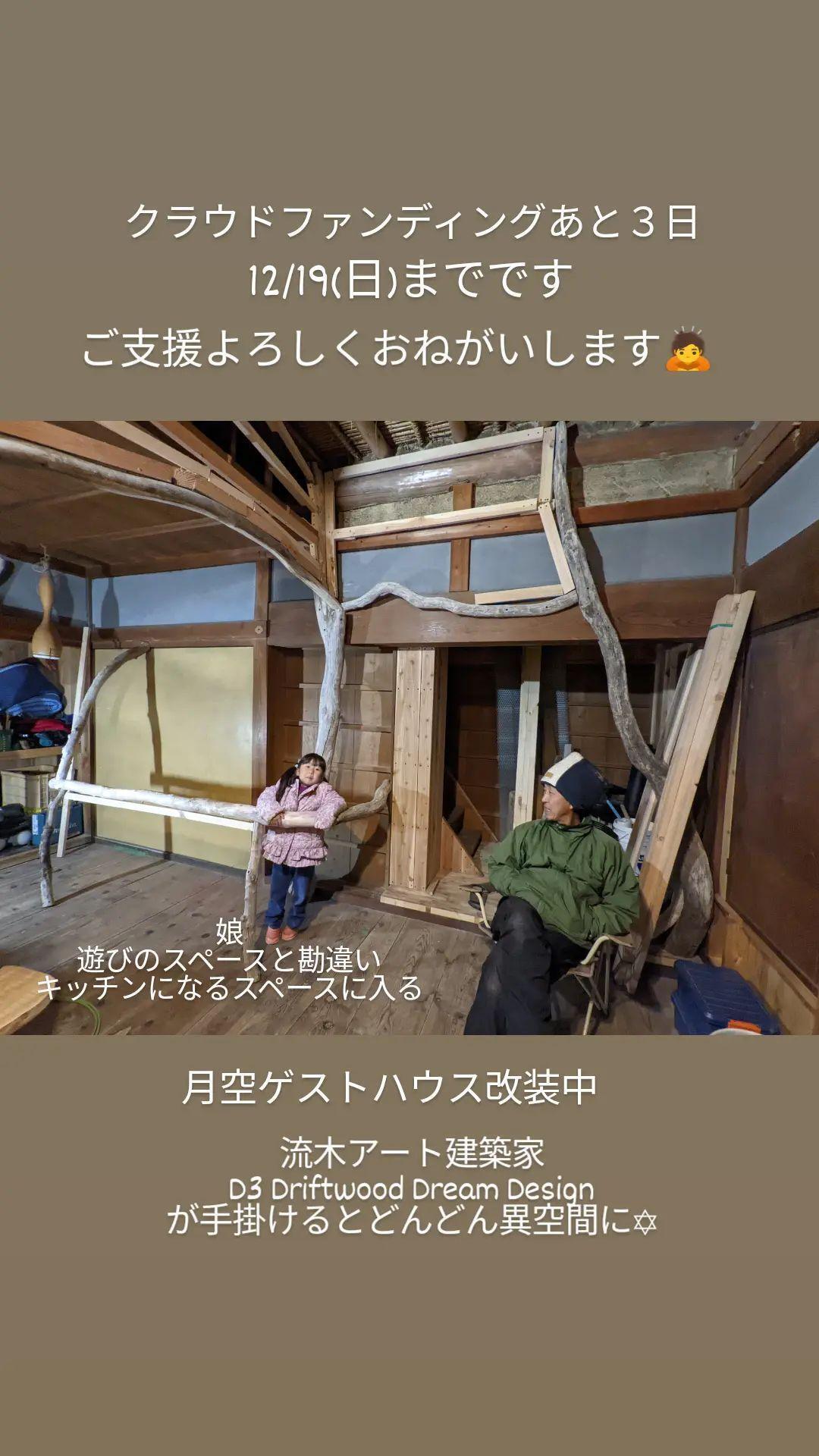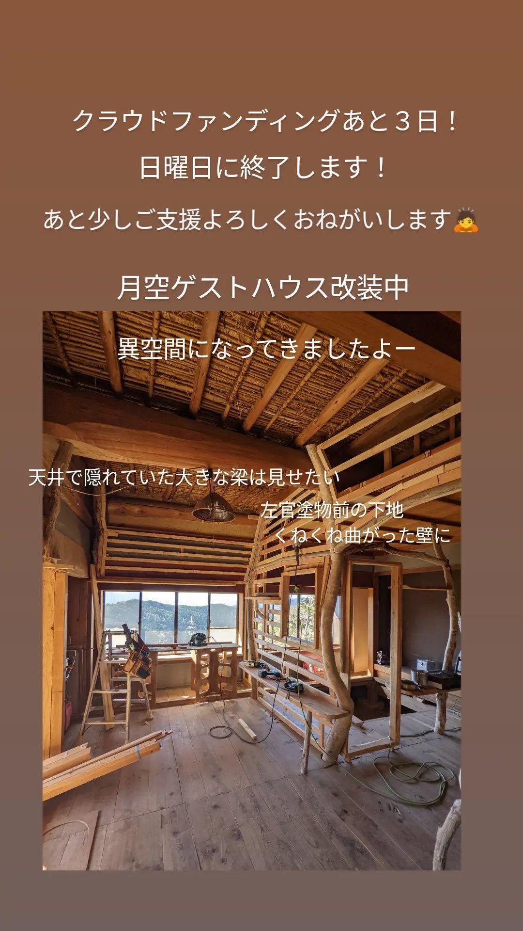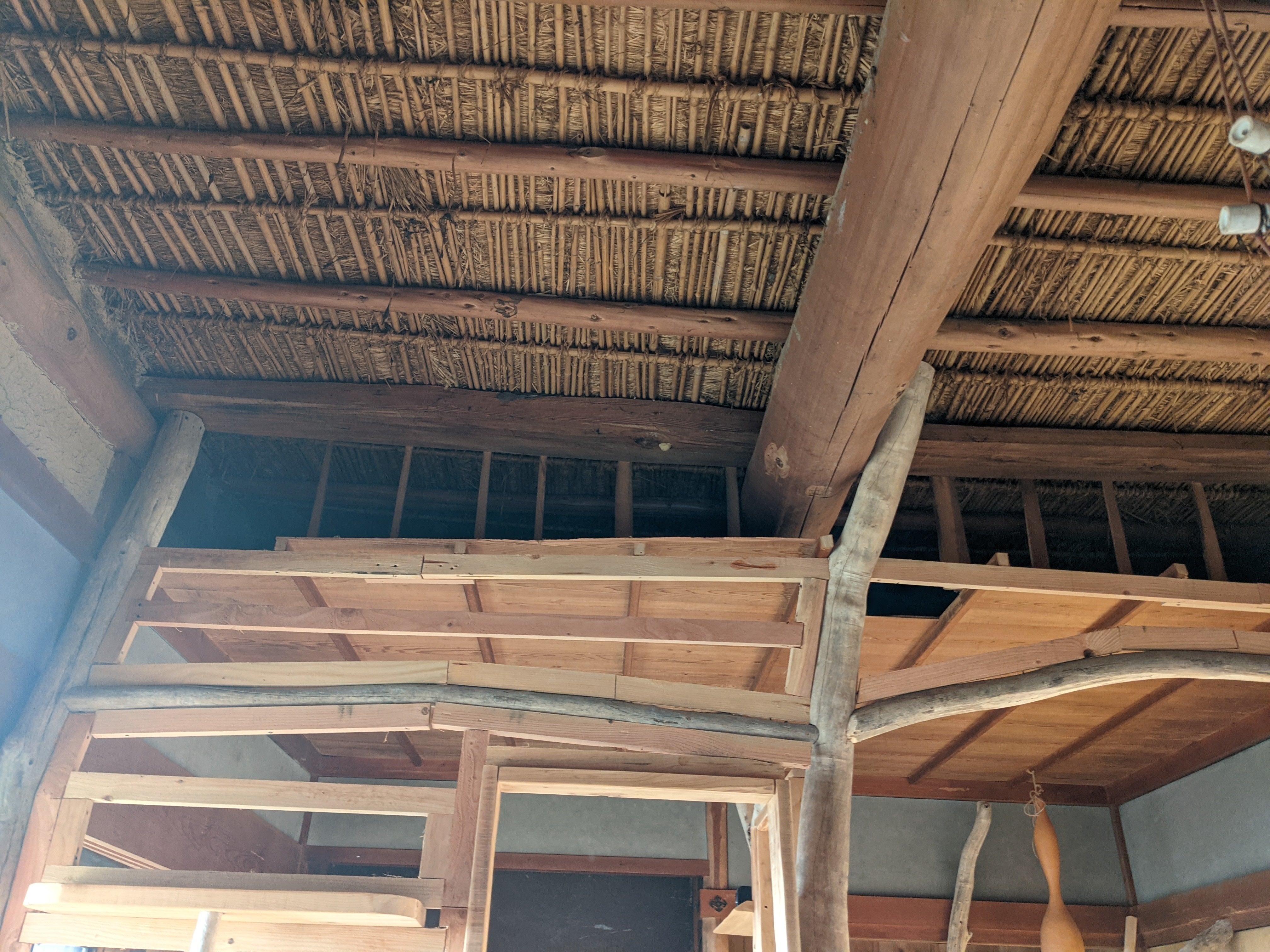 流木の柱をいっぱい建て、次は天井をバリバリメキメキ剥がしました。