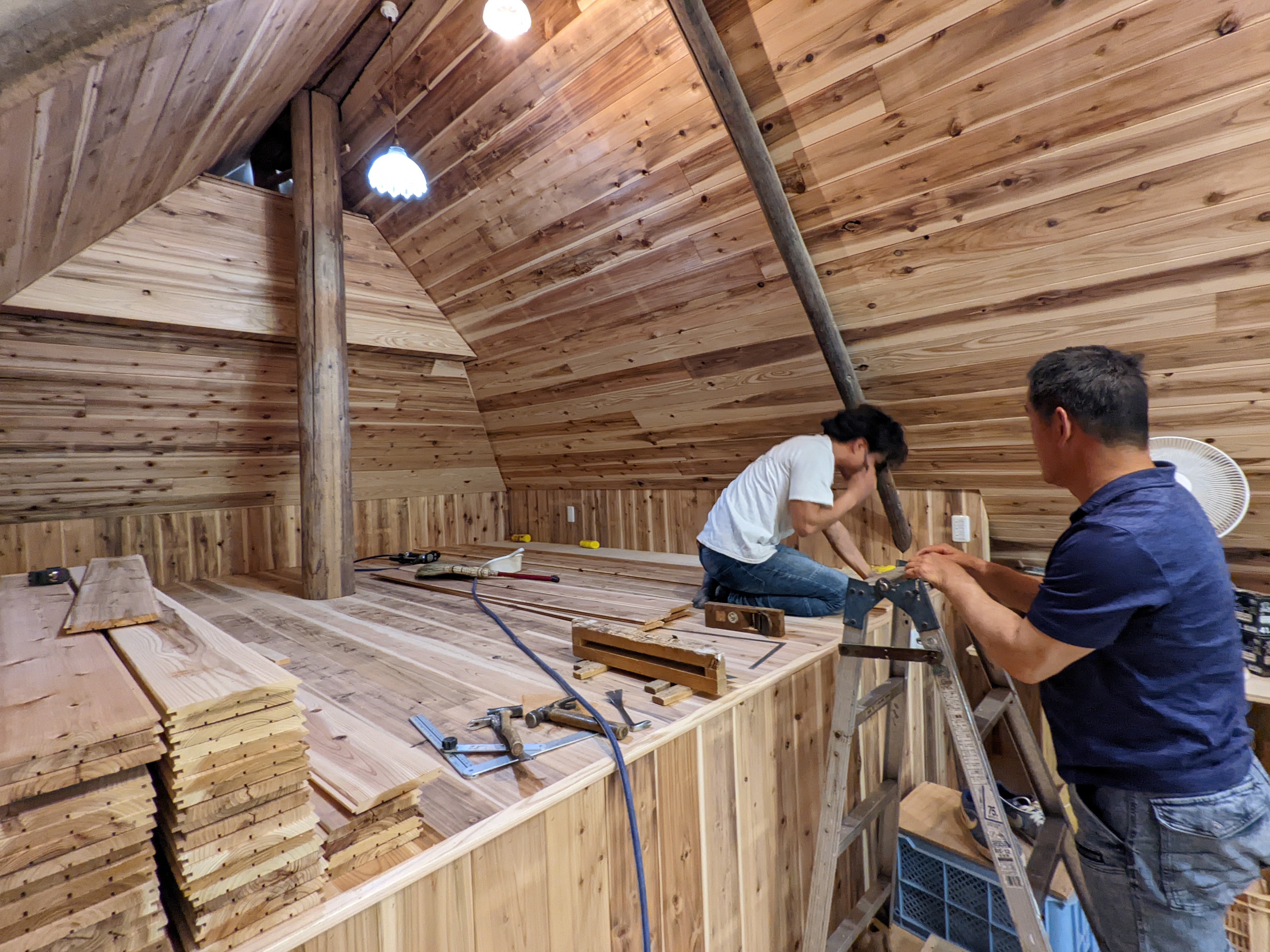 板張りはヒロカズ君の息子 職人さんが助けてくれました。