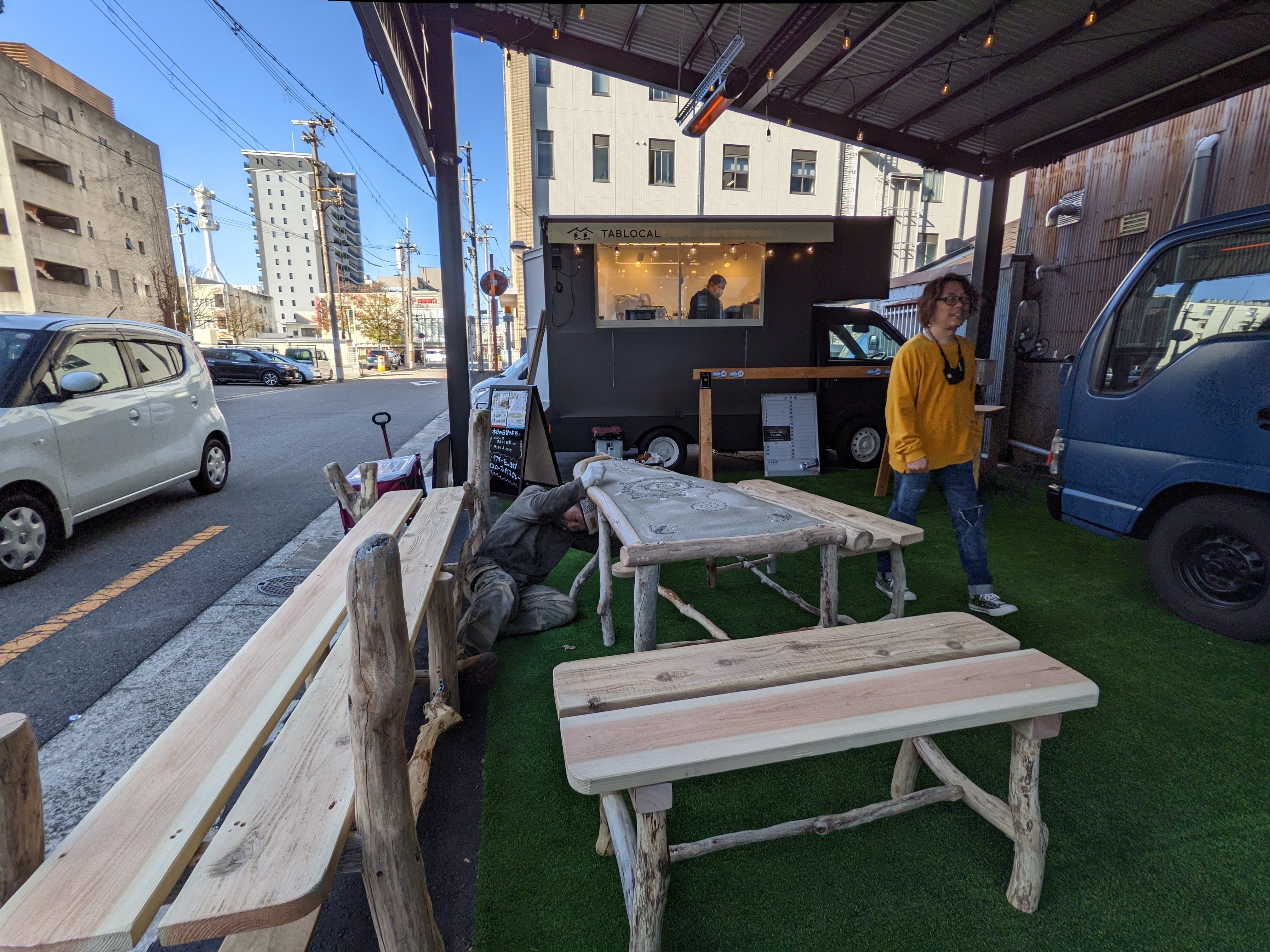 追加リターンのこんなの欲しい☆シロキタキッチンパークさんへ流木のベンチとテーブルを設置してきました。TABLOCAL号とオーナーが!ありがとうございます♡こちらはクラウドファンディングで街中に溢れる駐車場の中で、駐車場になりかけていた土地を活用、移動販売車のスペースに!みんなが集まる場所にしたスペース人工芝が敷いてあり気持ち良いですOpen日が決まっていたので急いで設置へ月空 流木アート建築家D3 Driftwood Dream Designがつくる流木のベンチとテーブルを設置させていただいた!