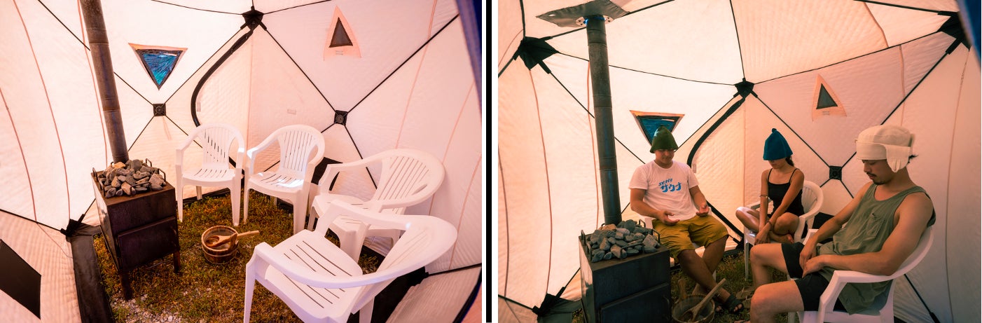 グループでの利用シーンが多いテントサウナですので、仲間同士で暖まりながら『ととのい』という宇宙に飛び立ちましょう。