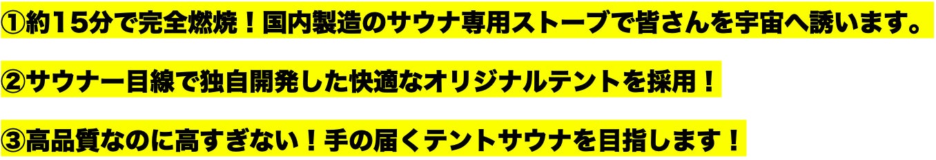 実際に僕達がテントサウナをする時に感じていた『こうだったら良いのに。』という改善点を出し合い、サウナー目線のオリジナルテントを開発しています。(現在最終サンプル段階です。)