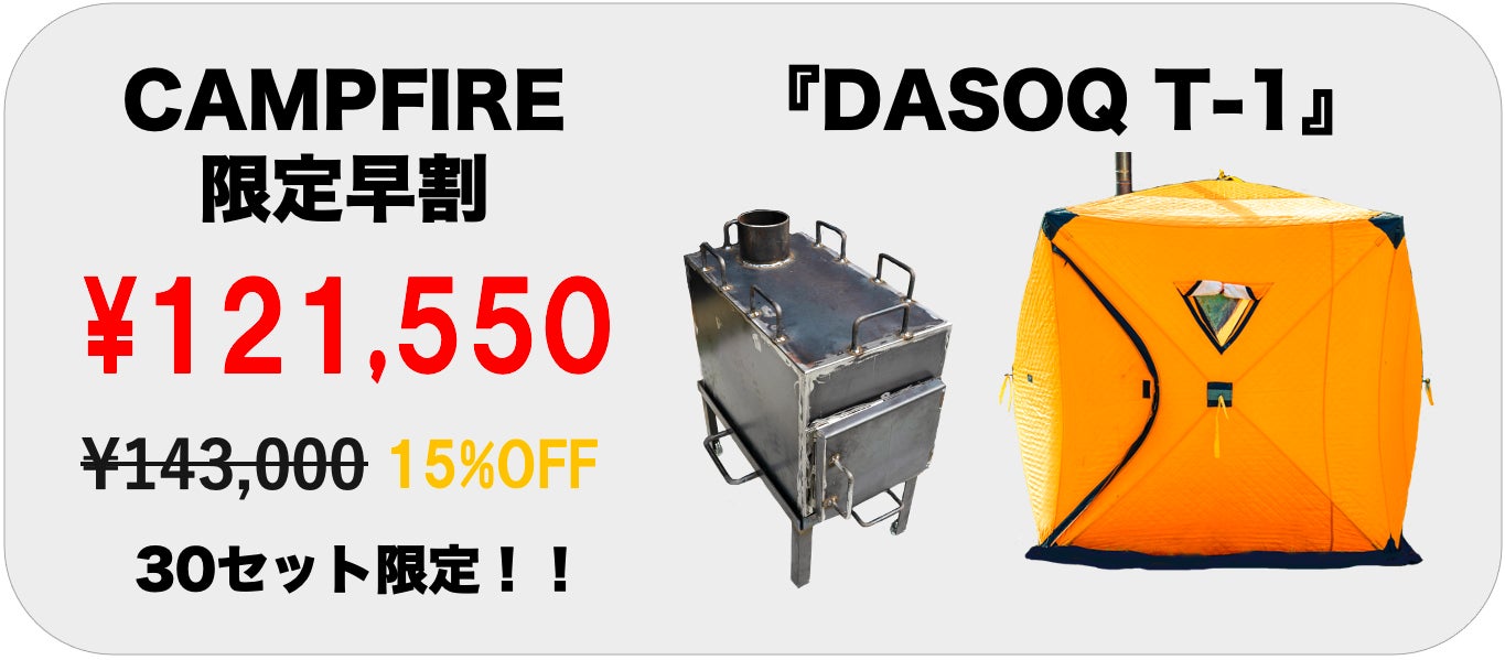 ・DASOQ T-1テントとストーブの組み合わせ以外でのトラブル等は、一切責任を負いませんので、ご注意ください。