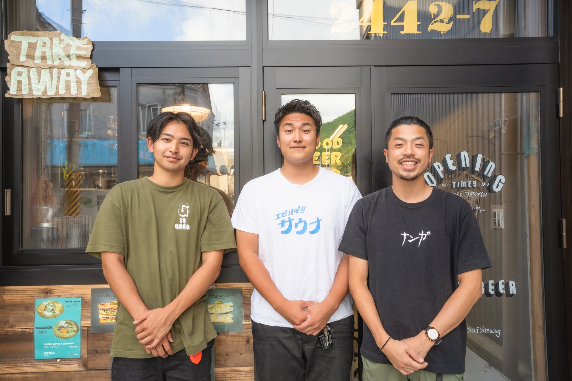 左から、写真・映像担当カズアキ、サウナ担当おーちゃん、代表那須