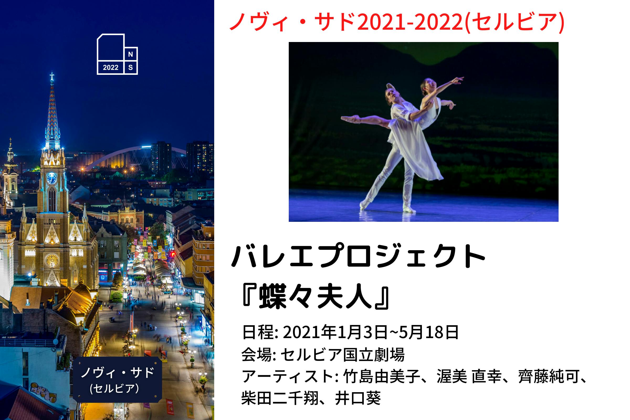 ノヴィ・サド(セルビア)のセルビア国立劇場とザンクト・ペルテン(オーストリア)のヨーロッパバレエの協働制作『蝶々夫人』。本作品は、欧州文化首都ノヴィ・サド2021-2022にとって重要な国際プロジェクトであり、世界的に活躍する衣装デザイナー竹島由美子氏をはじめ10か国以上から集まったクリエイティブ・チームと両劇場所属のダンサーが集結。コロナ禍による制作期間の長期化や観客数制限を伴いながらも、セルビア国立劇場・ヨーロッパバレエを中心に粘り強く準備が進められ、2021年5月14日、18日に初演を迎えました。