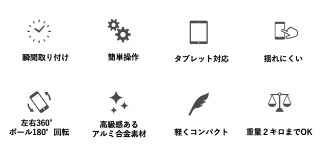 スマホもタブレットも、あっという間に取り付けや切り替えが出来ます。