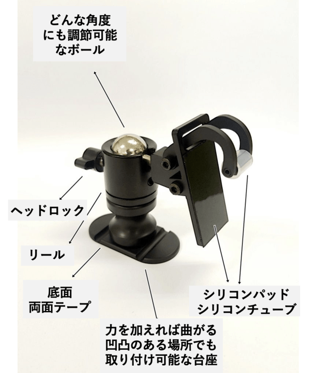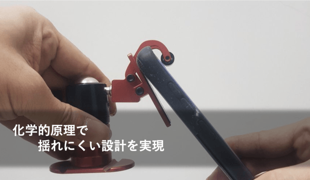 A: 科学的原理を応用した作りでしっかりと固定しますので、走行中でもスマホやタブレットは落ちにくくなっています。