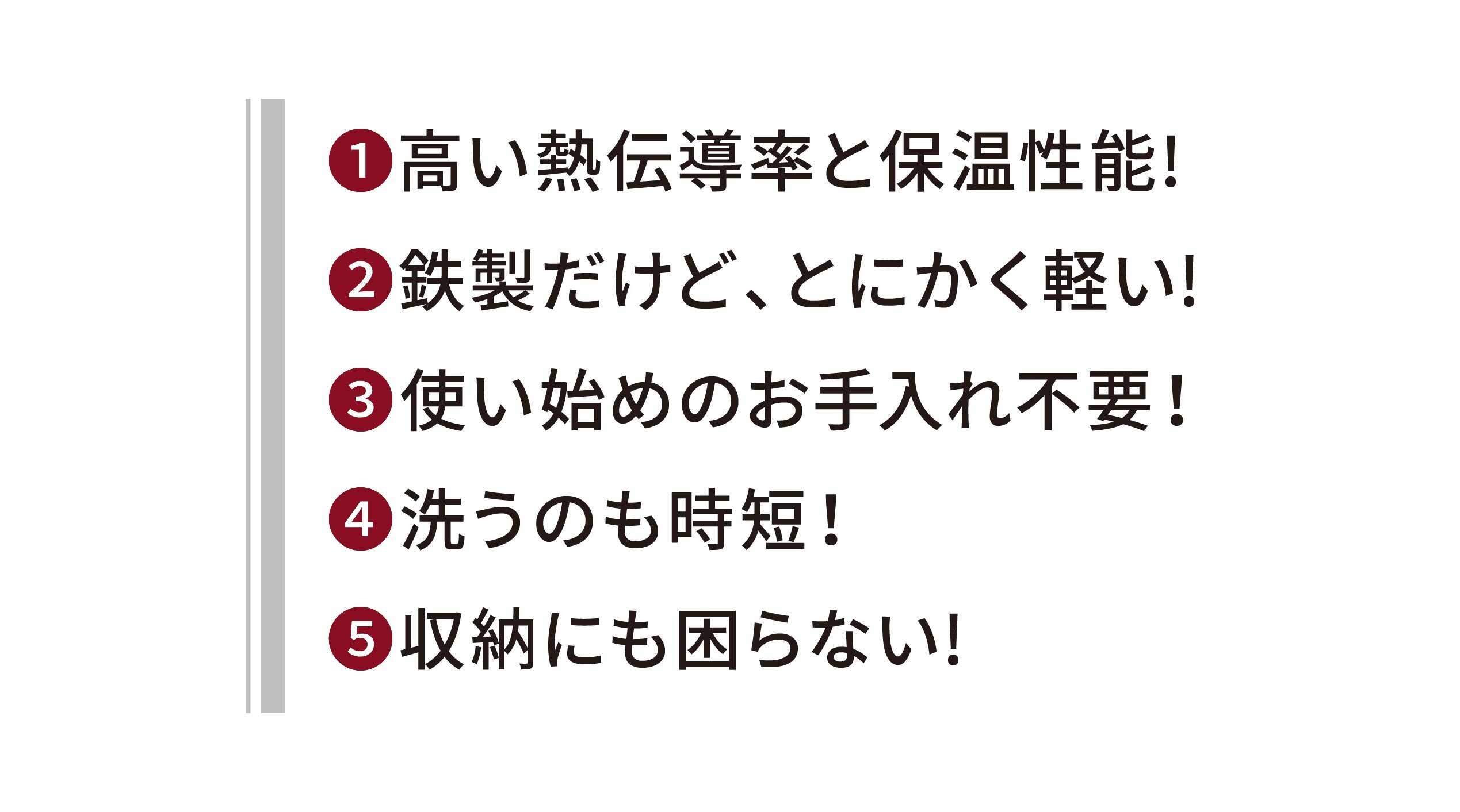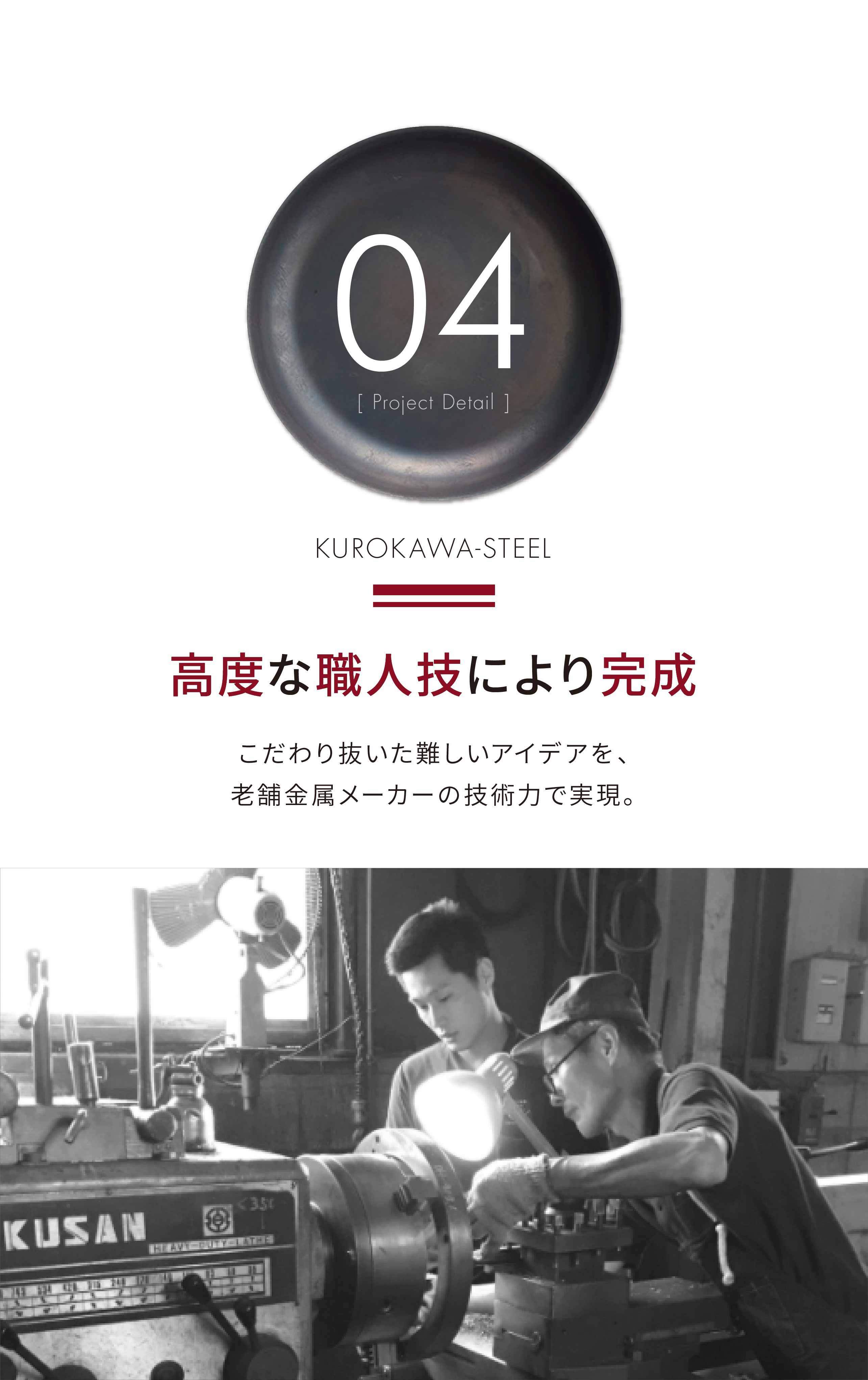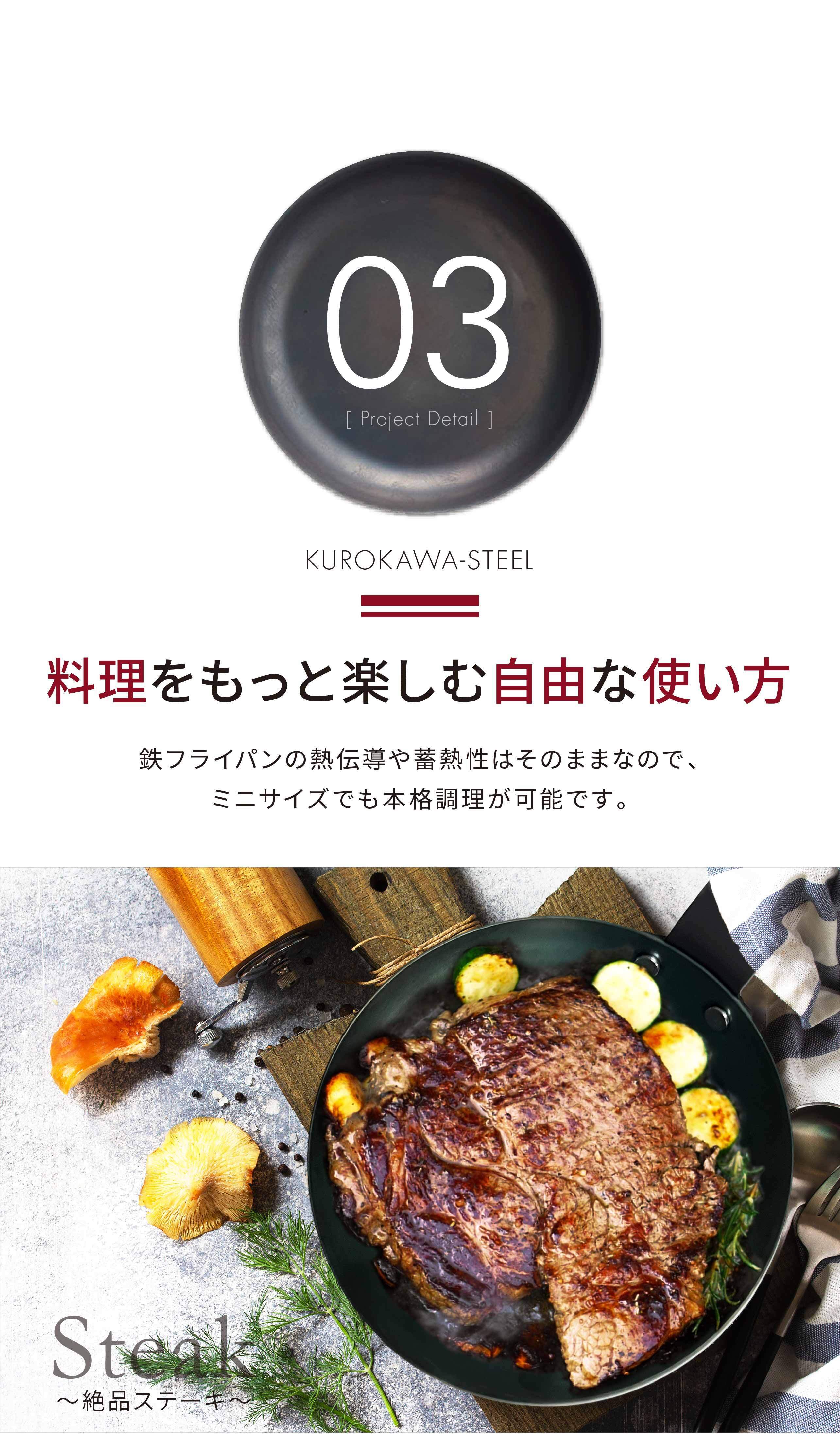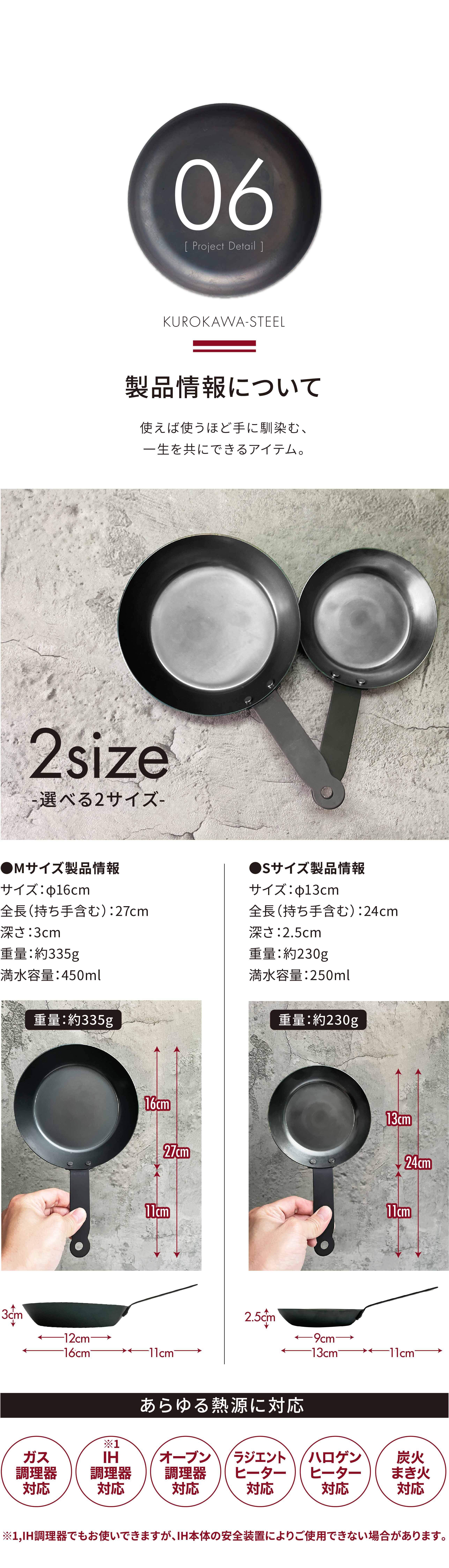 小さいから軽いのではなく、他社でほとんど使われていない「独自加工」により軽量化に成功。黒皮鉄の特性そのままに「鉄は重い」というデメリットを極限まで解消しました。