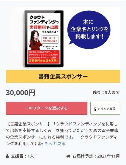 公開初日に書籍企業スポンサーのリターンを購入いただけました!