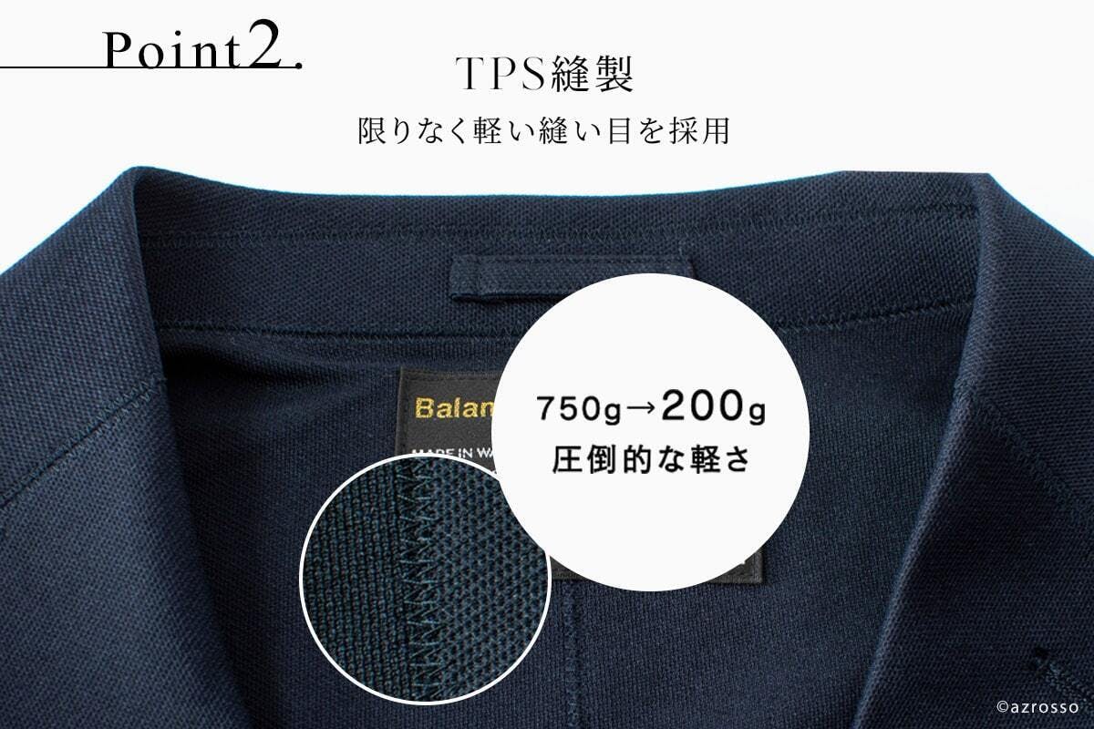 TPS縫製という限りなく軽い縫い目を採用し、
