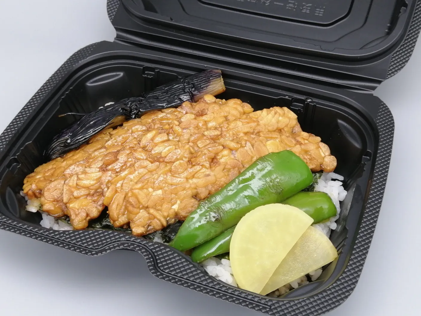 馴染みの人が少ないテンペですから、味のイメージしやすいように定番料理をお弁当に仕上げています。「テンペの照り焼き丼」「テンペのルーローハン風弁当」「テンペの麻婆豆腐弁当」「テンペと豆腐のハンバーグ弁当」
