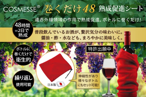 お酒のボトルに巻くだけで味がワンランクアップ 熟成促進シート「巻くだけ48」を発売!