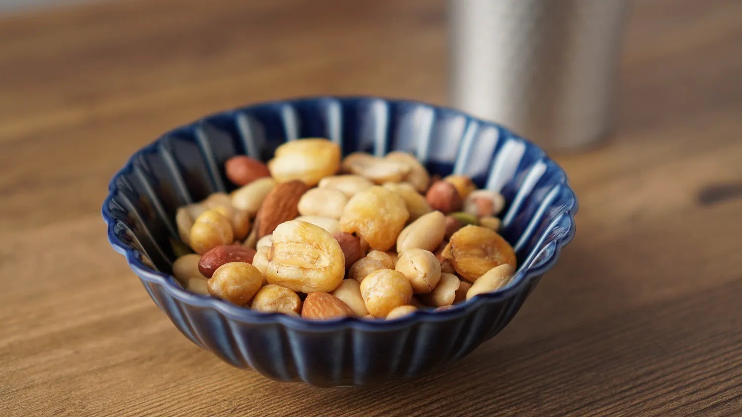 ミックスナッツの燻製は、ピスタチオ・アーモンド・ピーナッツ・くるみ・ジャイアントコーンの5種類のナッツがミックスされています。