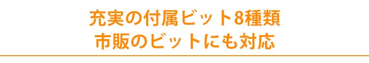 使用可能なビットは世界規格の2.35×35mmなので、市販のビットにも対応します。用途に合わせて適したビットを選ぶことで使い方はさらに広がります。