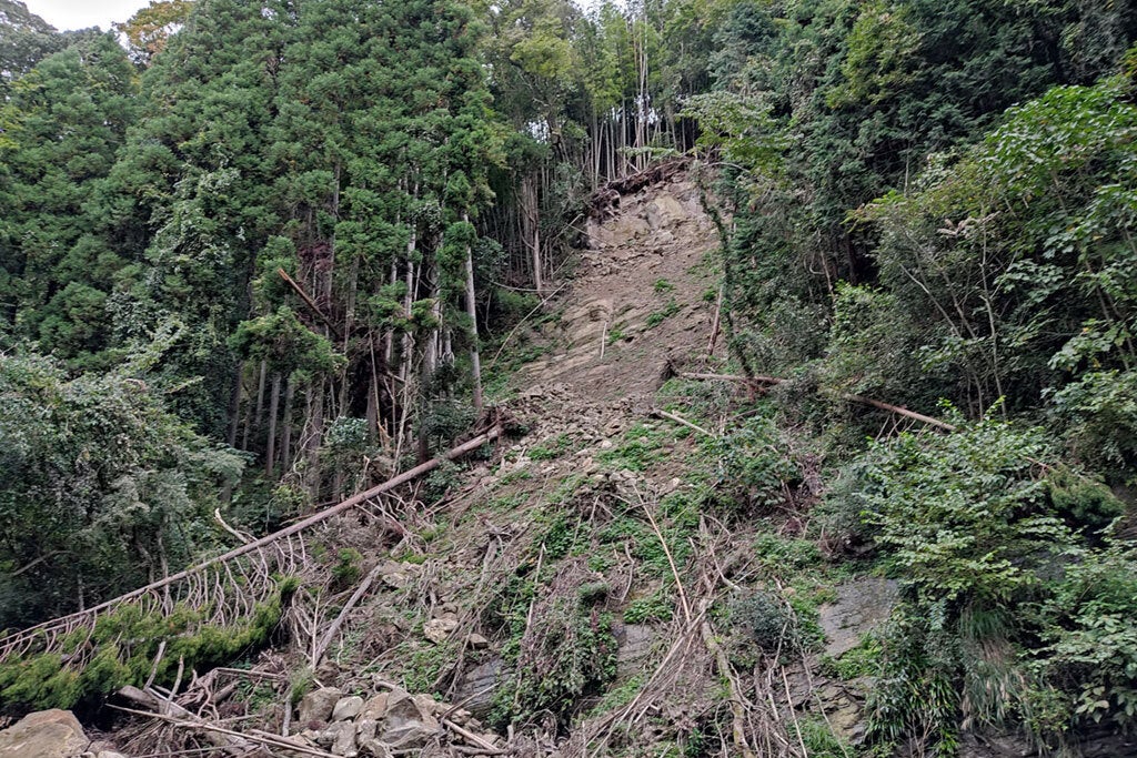 山の土は、基本的に「木の根っこ」で支えられています。この根っこが弱くなれば、土を「つかむ」ものがなくなり、まとまった雨が降ったときに土の表面が流れ出し、土砂崩れとなってしまいます。