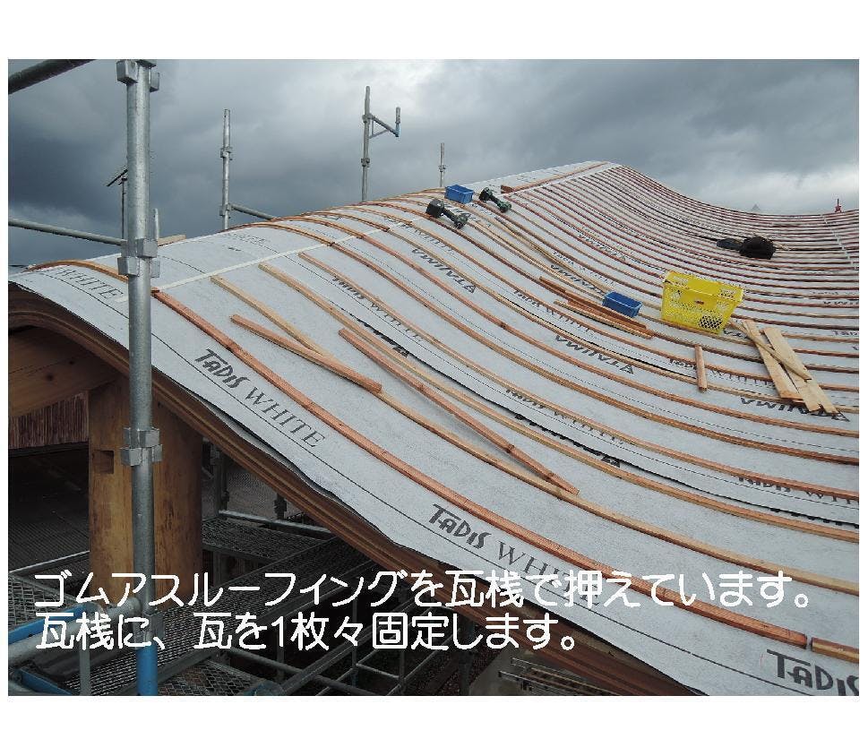 「弁当忘れても、傘忘れるな」と言い伝えられる日本海型気候で共に育ったので、うらにしには慣れているはずなんですが、湾曲積層梁の高難易度の瓦葺と雨のおかげで、作業効率落ちています。ガンバレ!瓦屋さん!!