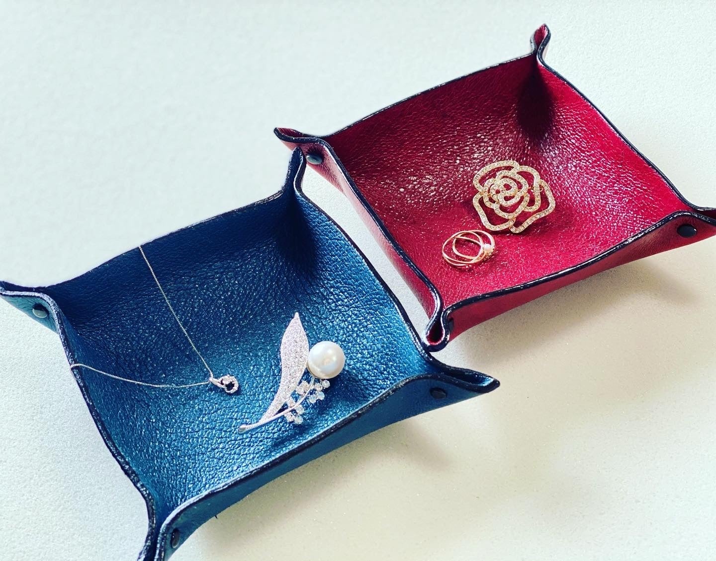 アクセサリーや時計を置いたり、小さなパーツを入れたり。菓子受けとして使うのも高級感が出て素敵です。ギフトボックスに入れてお届けします。