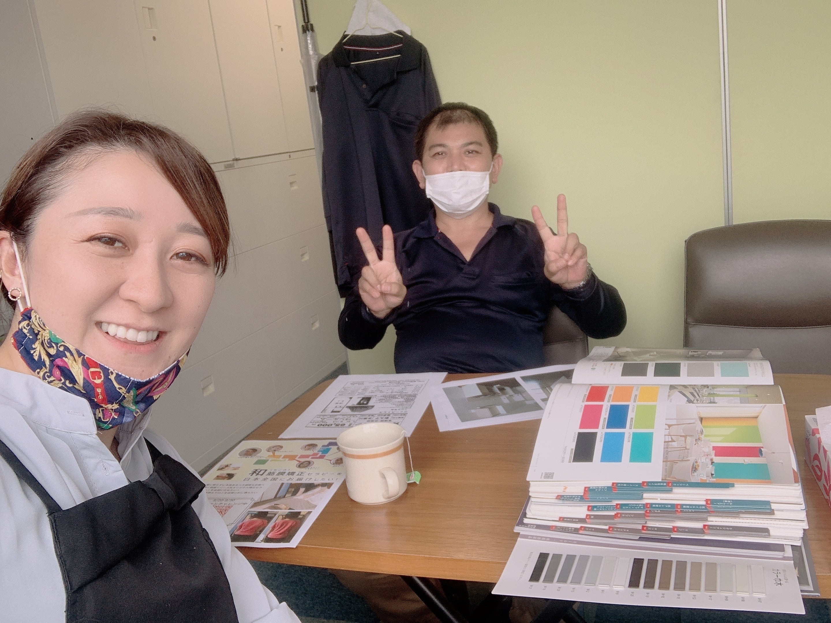 今日は横浜でお仕事と合間に、店舗内装の宮本さんと巾木、壁紙、床貼りの打ち合わせを。