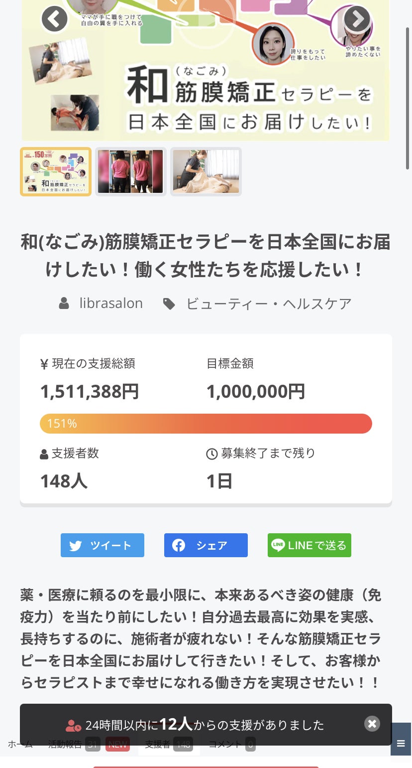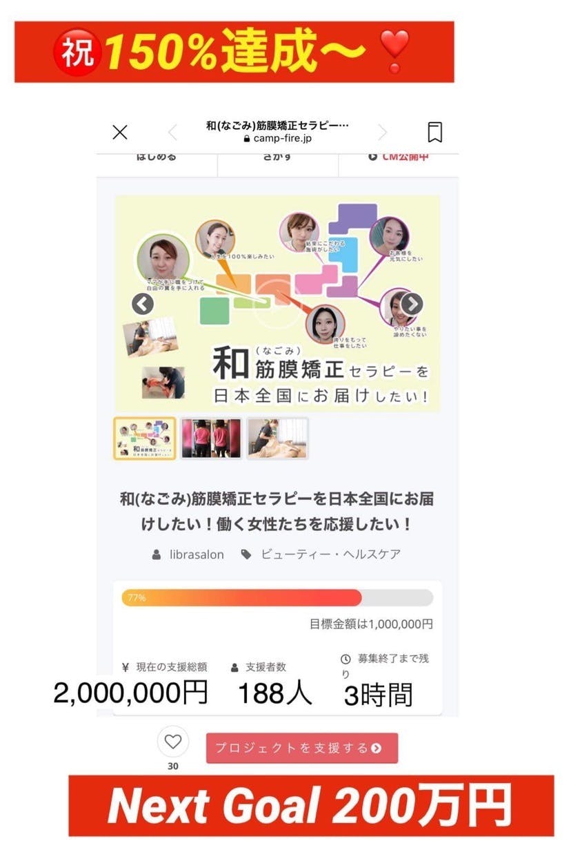いよいよこの和筋膜セラピーのクラファンが明日の23:59をもって終了致します☆