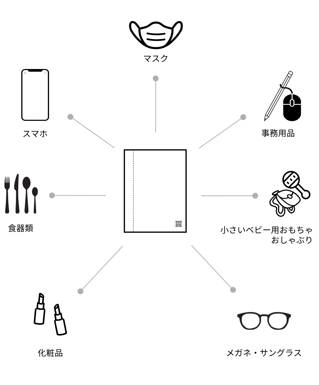 化粧品, スマホ, 事務用品など