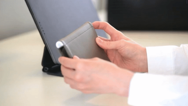 ライズルは57gという驚くほどの軽さで薄さはわずか2センチ。片手に収まるサイズにしました。