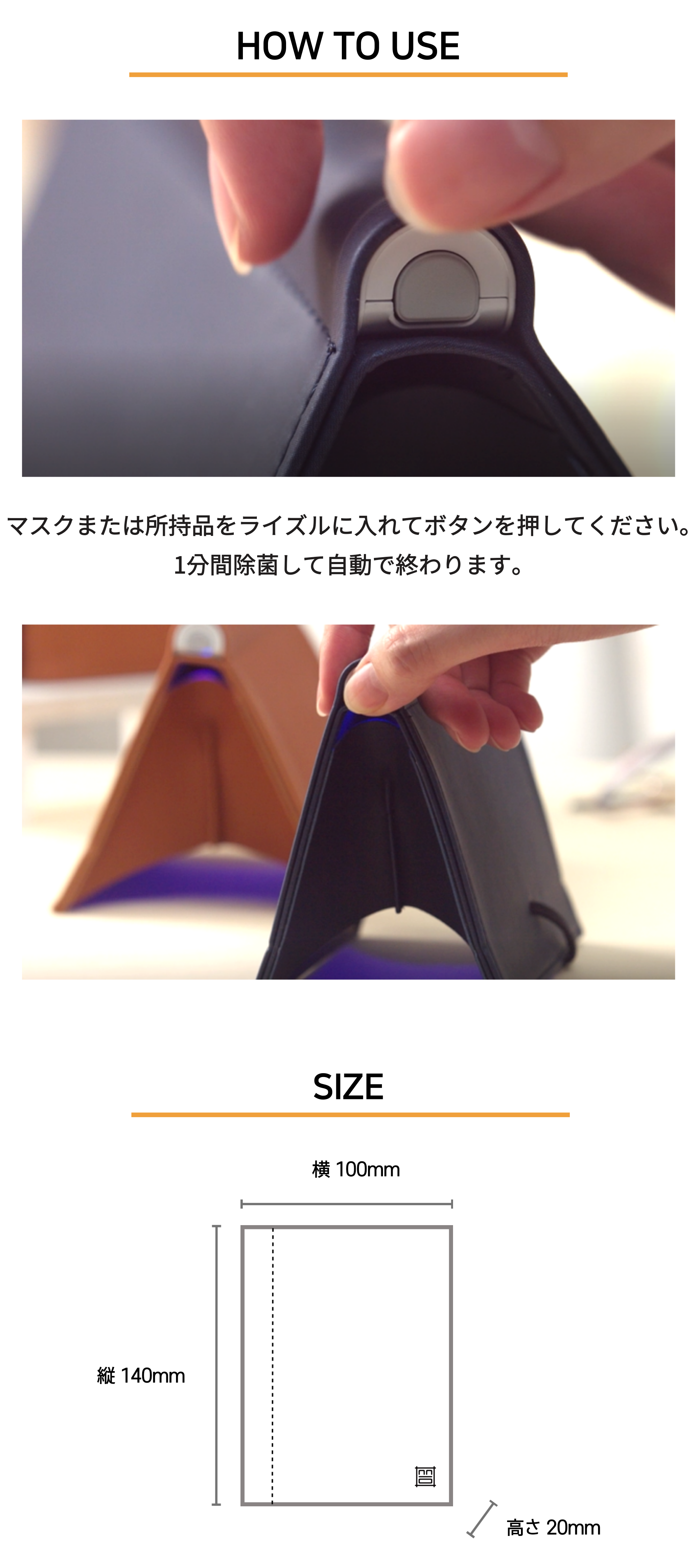 ■ボタン一つで簡単除菌。 60分充電で100回使用可能