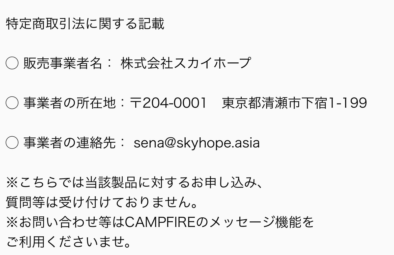 スカイホープ社は、CAMPFIREでの出荷とカスタマーサービスを担当します。