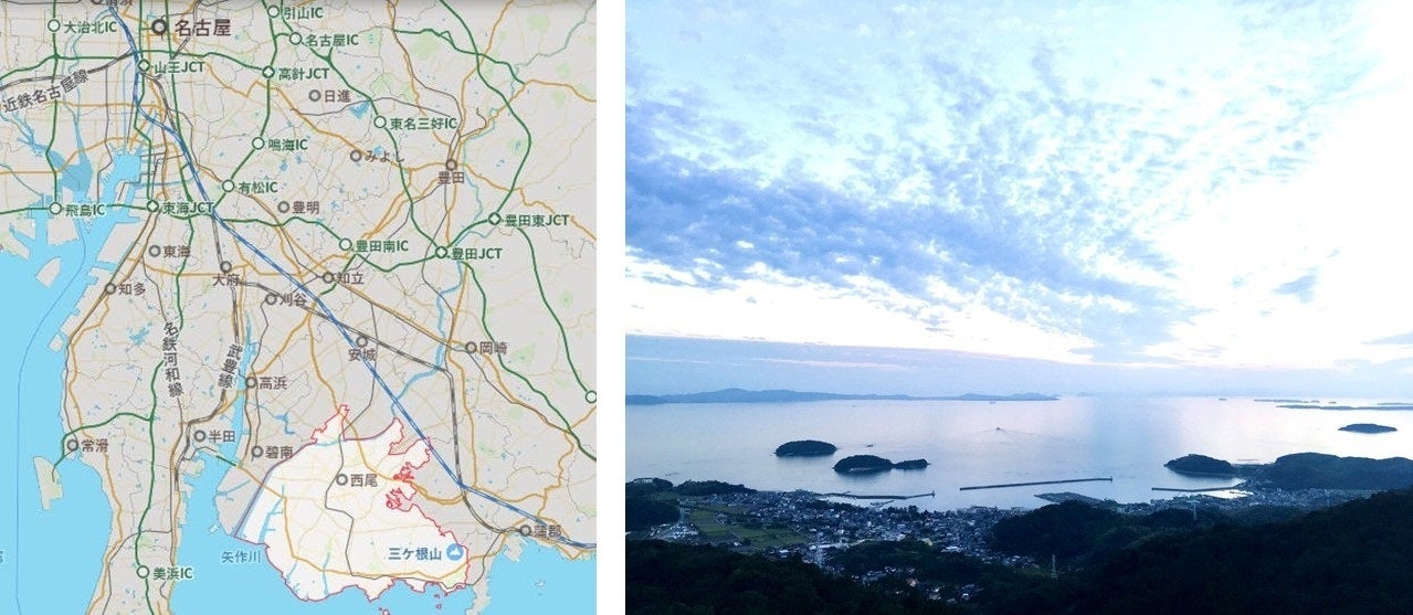 西尾市は愛知県の南部に位置しています(左)