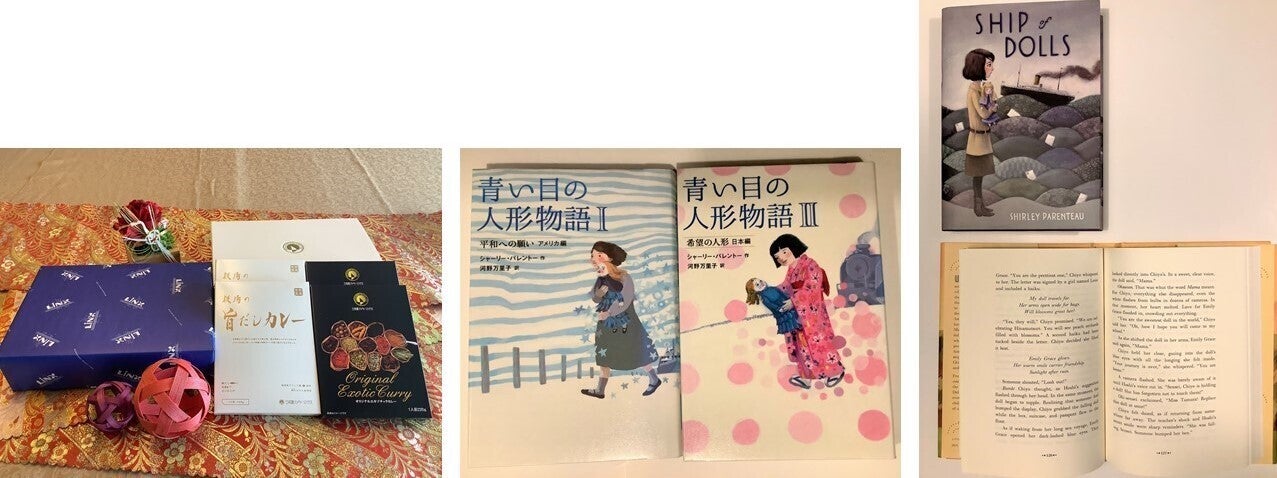 ●50,000円 お礼状、三河湾リゾートリンクス ホテルオリジナルカレーセット(4P)、『青い目の人形物語Ⅰ アメリカ編』『青い目の人形物語Ⅱ 日本編』シャーリー・パレントー(岩崎書店) ※〈英語で人形物語を読む〉講習会参加券付、コンサート付展示会招待券(4名分)、お名前掲示権