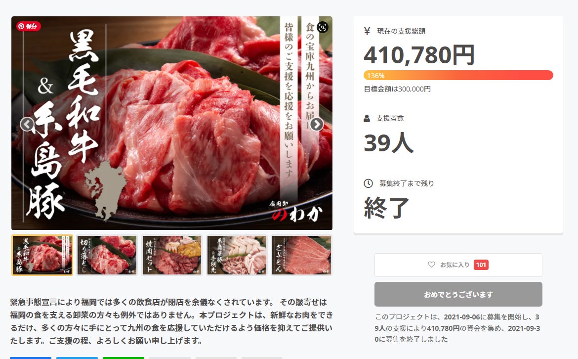 上記プロジェクトも大成功のうちに目標金額を達成し、コロナ禍に苦しむ飲食店をサポートすることができました。今後も様々な活動に取り組んでいきたいと考えております。