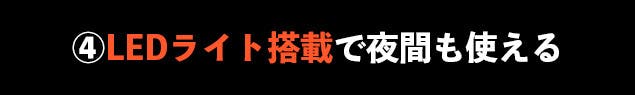暗い場所でも使えるよう、本体にLEDライトを搭載。
