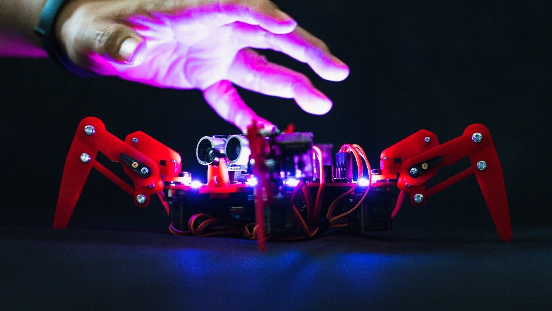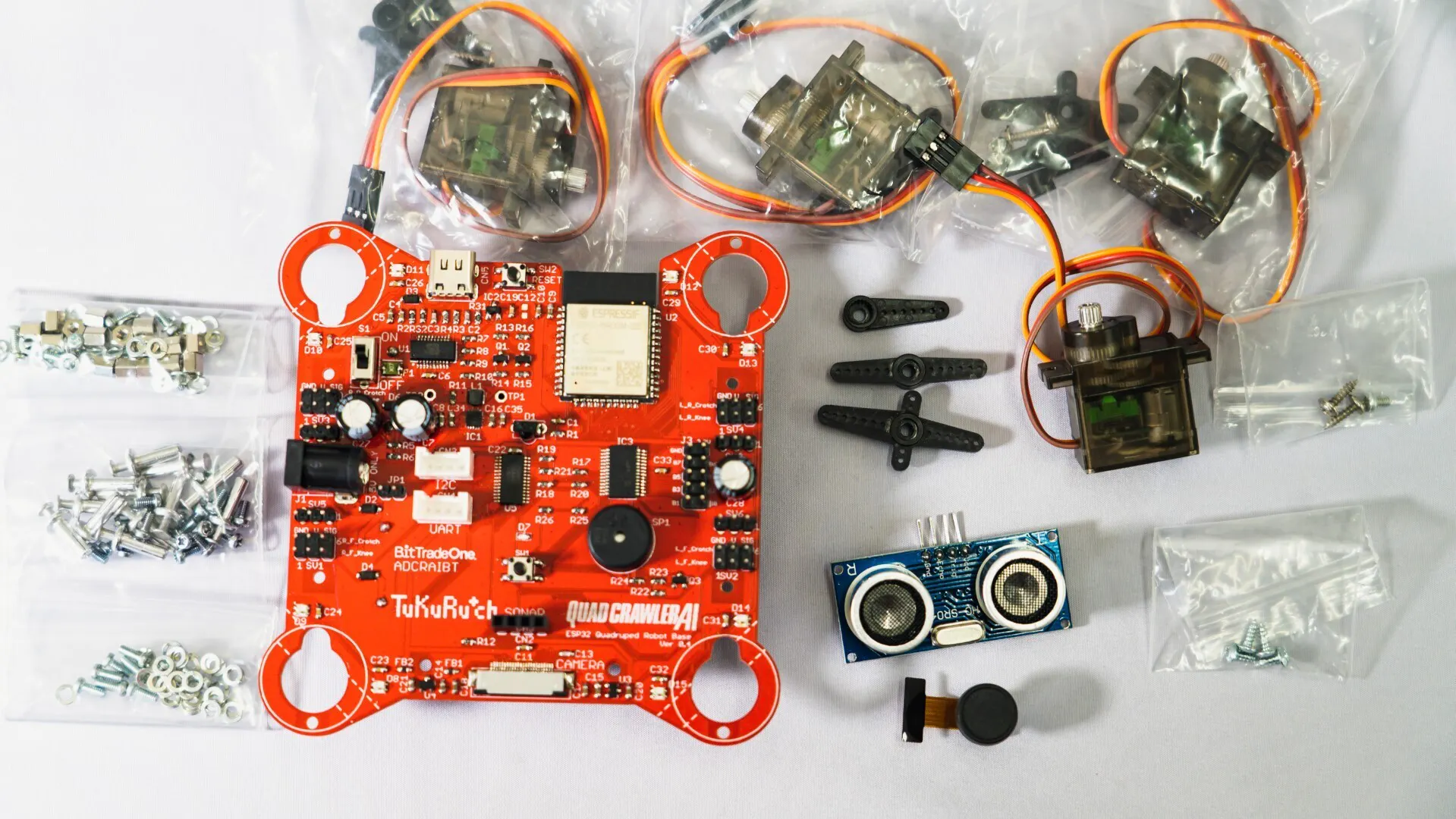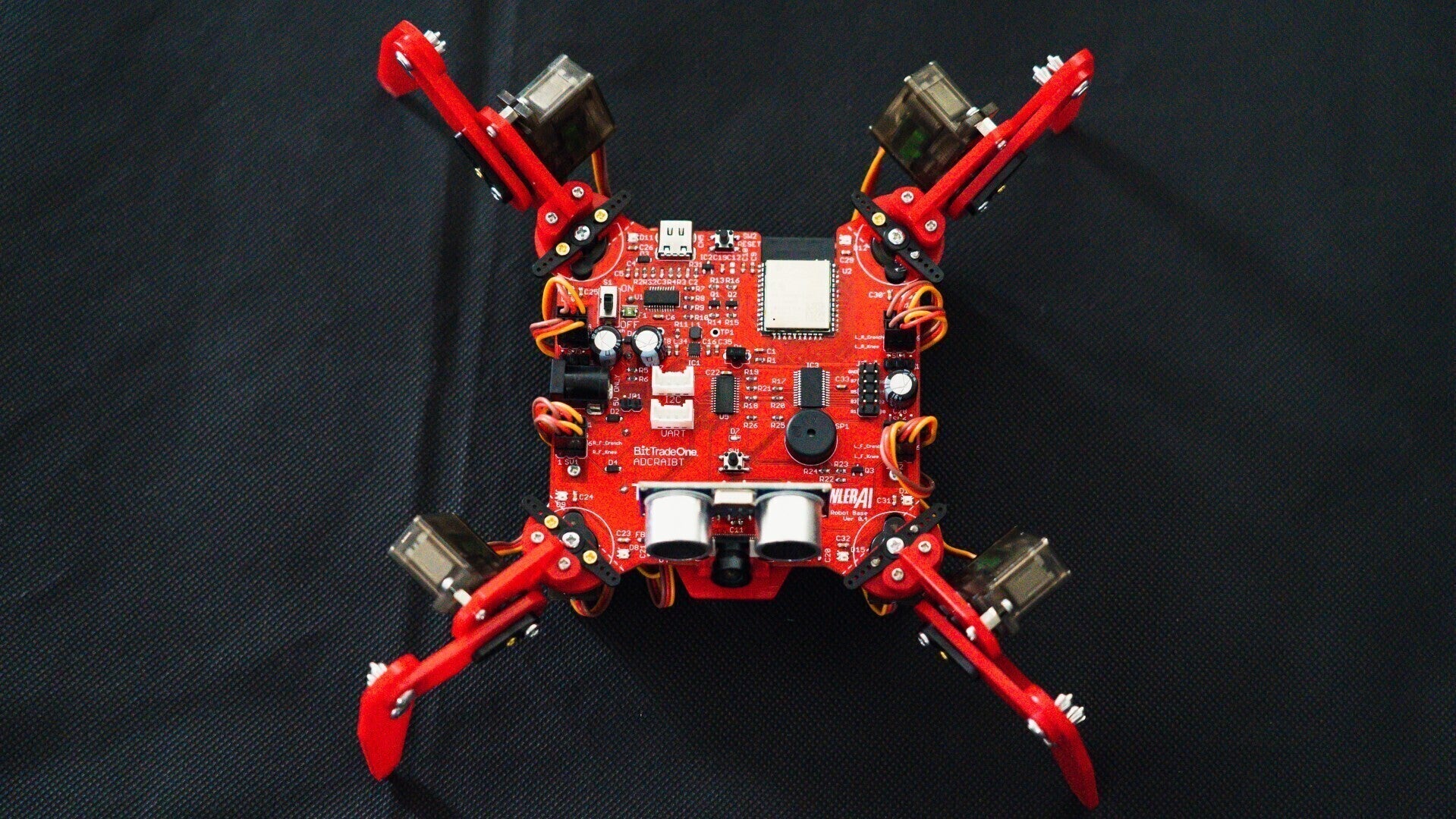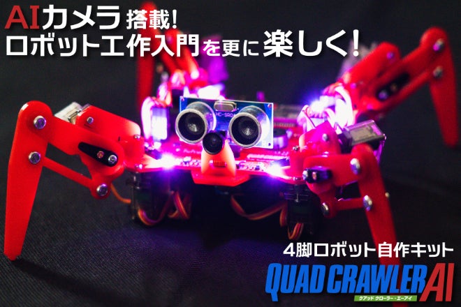 「クアッドクローラーAI」は映像認識システムを搭載した多関節4足歩行ロボットキット。