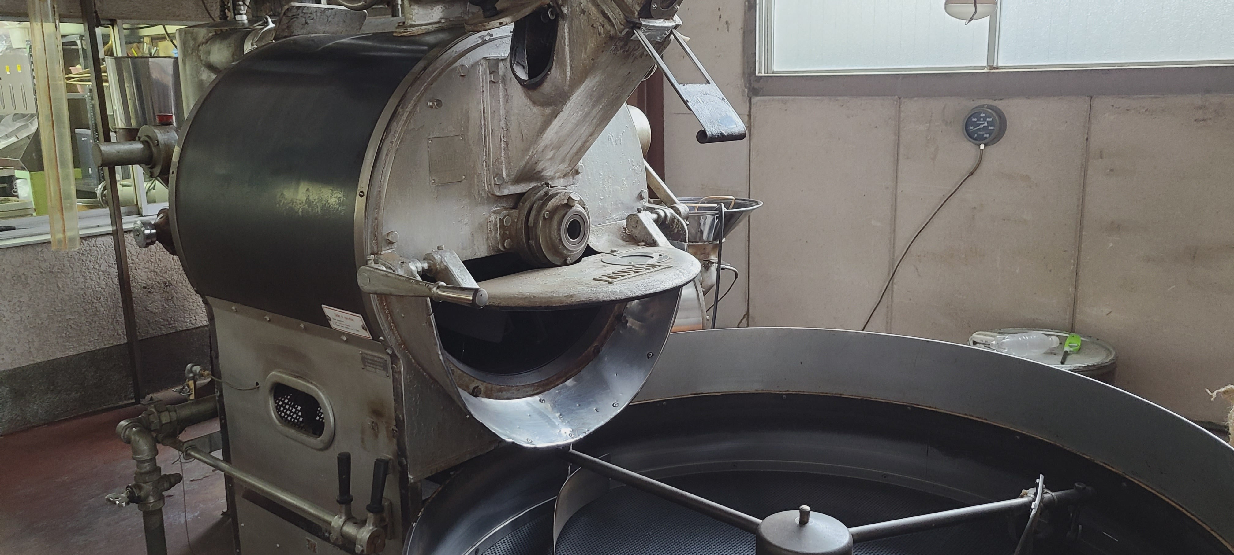 現在活躍中の焙煎機。20Kg焙煎機の為、近くで見ると迫力あります!