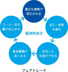 公正な取引をすることで生産者は収入を得る→機械や農作技術を持つ→さらに安定した生産をして生産物